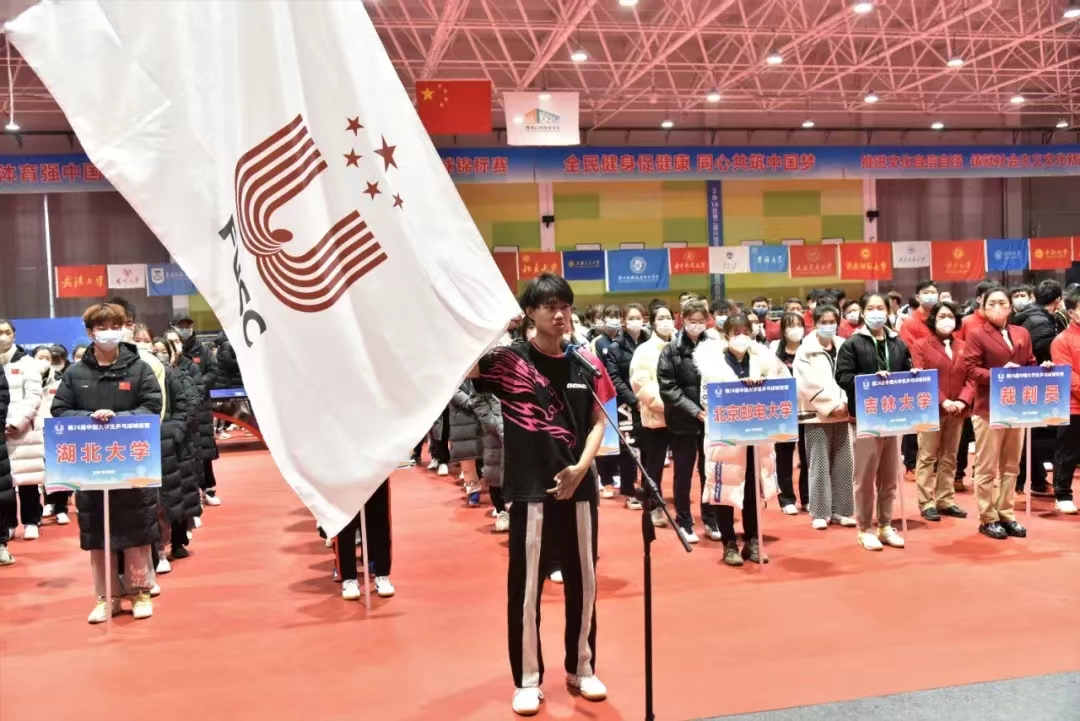 其中,法学院20级张兆伊同学、计算机与科学学院20级任鑫雨同学获得女子双打季军、新闻与传播学院21级侯矢甲同学获得男子单打第五名的优异成绩。新闻与传播学院21级侯矢甲、行政学院21级郭凡、计算机与科学学院20级丁一铮、法学院19级唐雨晴四名同学获得本次比赛“精神文明运动员”称号。同时,侯矢甲同学作为优秀运动员代表在开幕式上宣誓。