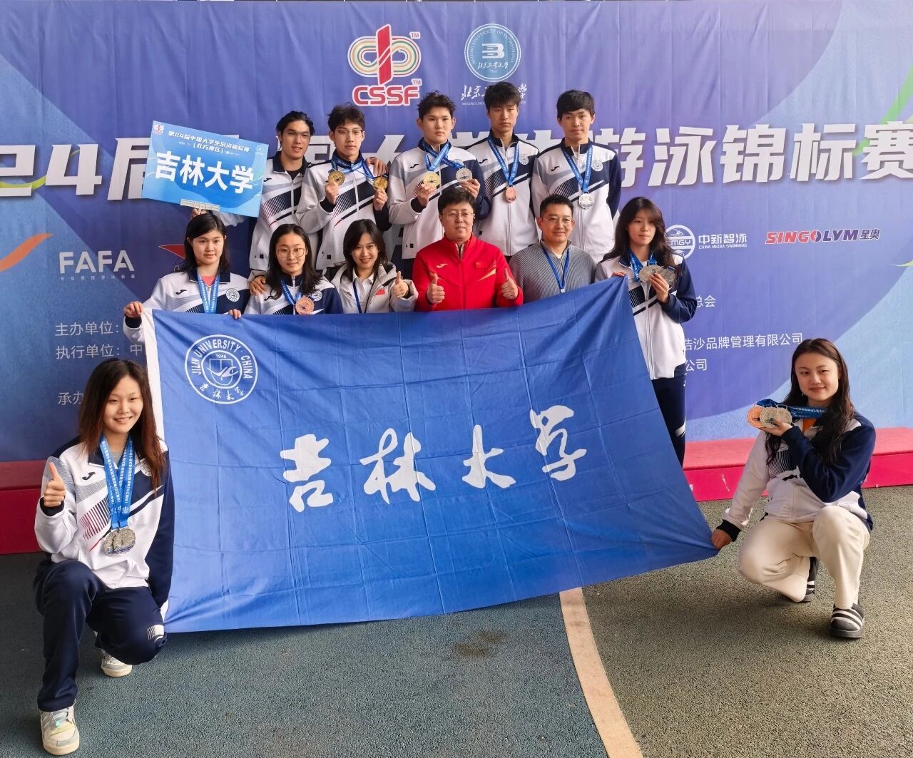 优异成绩的取得,是多方力量共同汇聚的结果。中国学生体育联合会搭建赛事平台,使队员们相互交流、相互促进;学校和学院注重人才的培养,为同学们提供优质游泳教学训练场馆,优化训练教学培养方案;教练团队科学设计训练内容,队员们刻苦训练积极备战等等才创造了今天的成绩。未来的赛场上,吉大游泳队全体队员将继续保持专注与谦逊,以更坚决的态度迎接每一次挑战,在更高的舞台上展现吉林大学竞技体育精神,为学校体育发展书写更多光荣的泳者之心。
