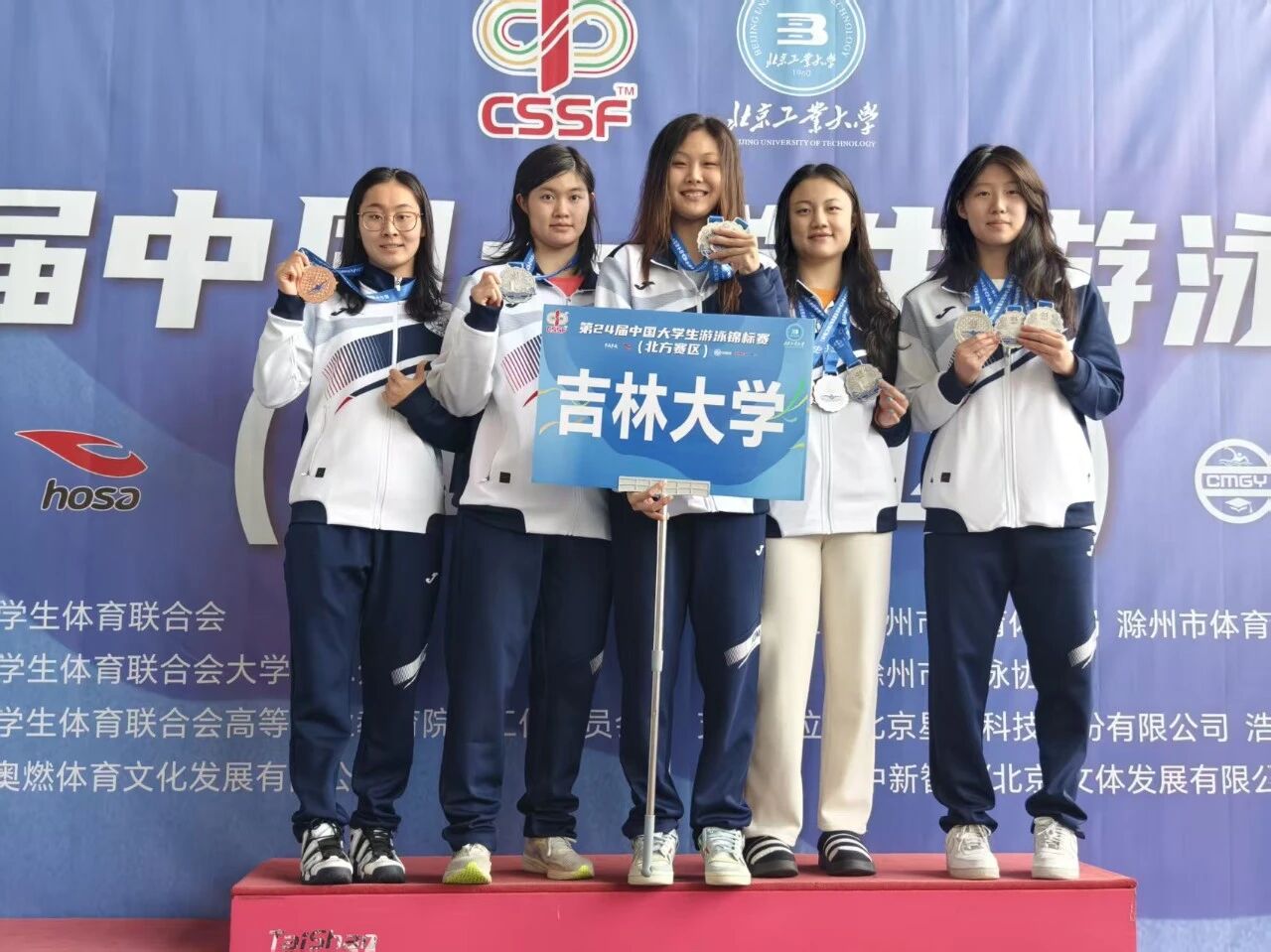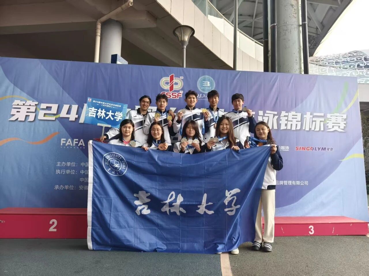 2025年12月5日,第24届中国大学生游泳锦标赛(北方赛区)在安徽滁州奥体中心开赛。此次赛事是由"中国学生体育联合会"主办,"中国学生体育联合会大学游泳分会"执行,"安徽奥燃体育文化发展有限公司"承办。来自长江以北114所高校1023名运动员参加,这是国内高校泳坛最高规格的赛事之一。我校10名运动员参赛,全部晋级八强,其中9名队员获得奖牌,以3金10银3铜的表现创造吉林大学历史参赛最好成绩!