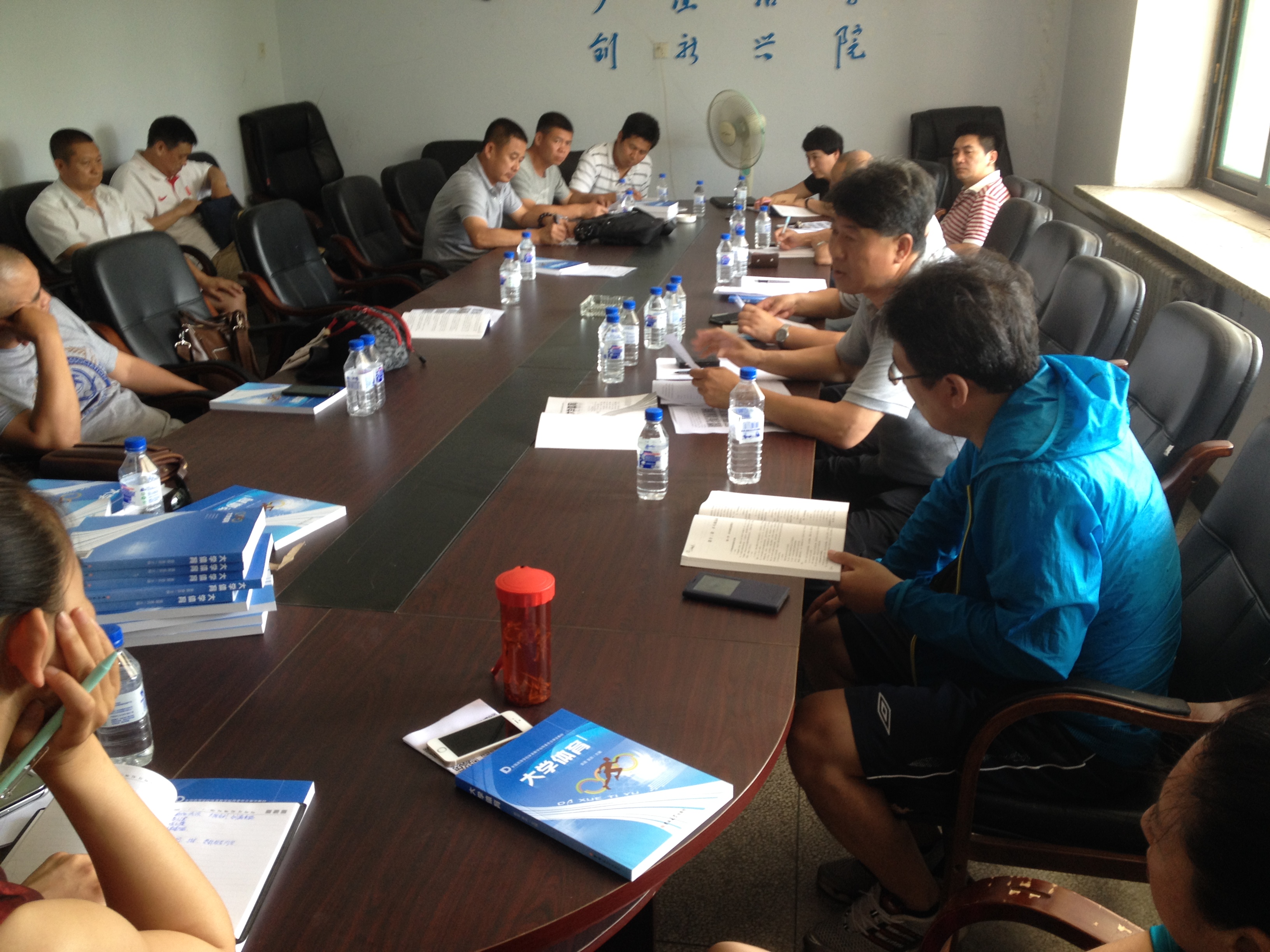 公共体育课程主讲教师工作职责》向各位主讲教师逐条解读,他要求利用暑假期间在主讲教师的带领下组织相关运动项目教师,研究更新课程教学内容,制定专项教学大纲、教学进度,规范教案模板,在下学期开课前进行统一集中备课,将公共体育课程主讲教师制落到实处。